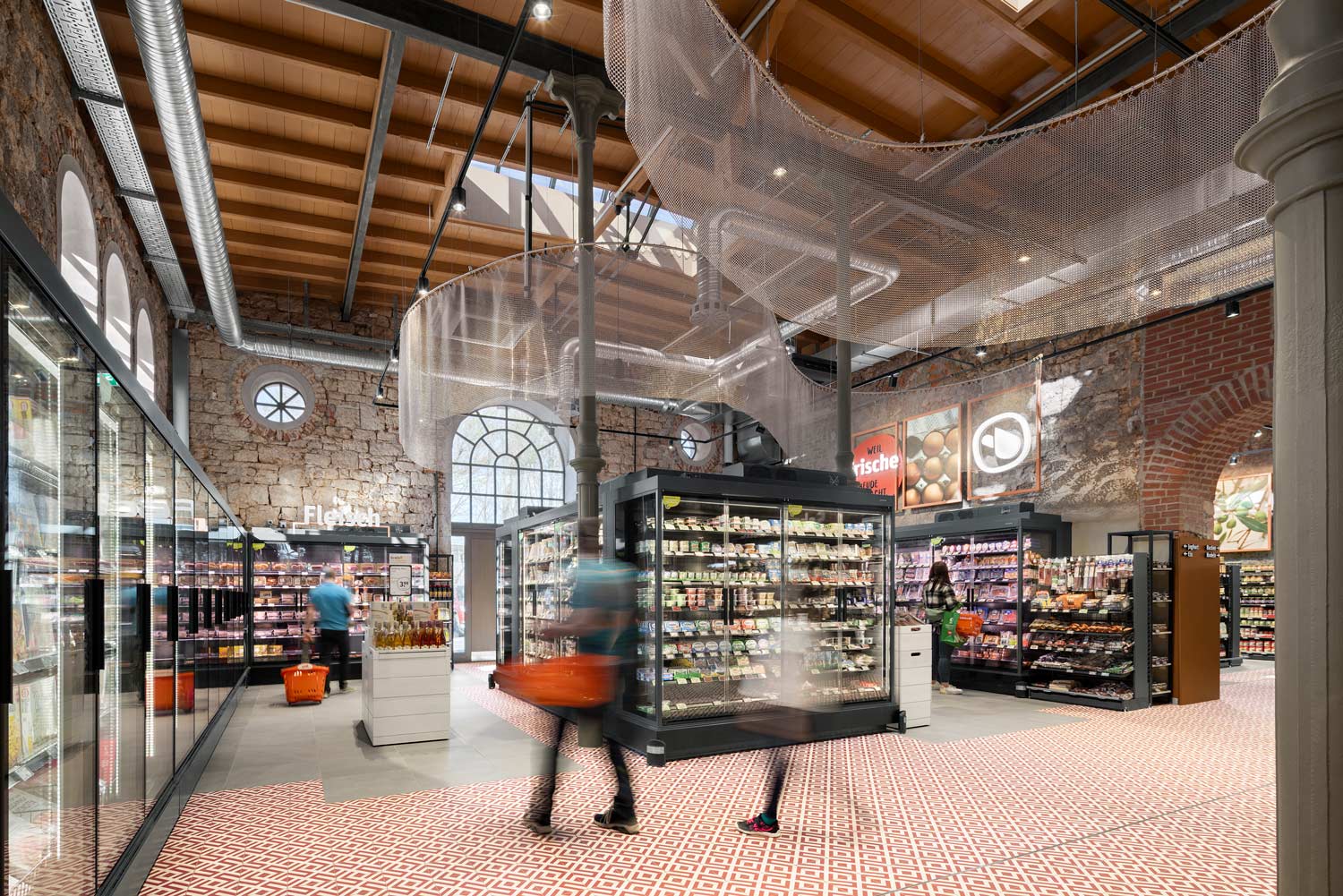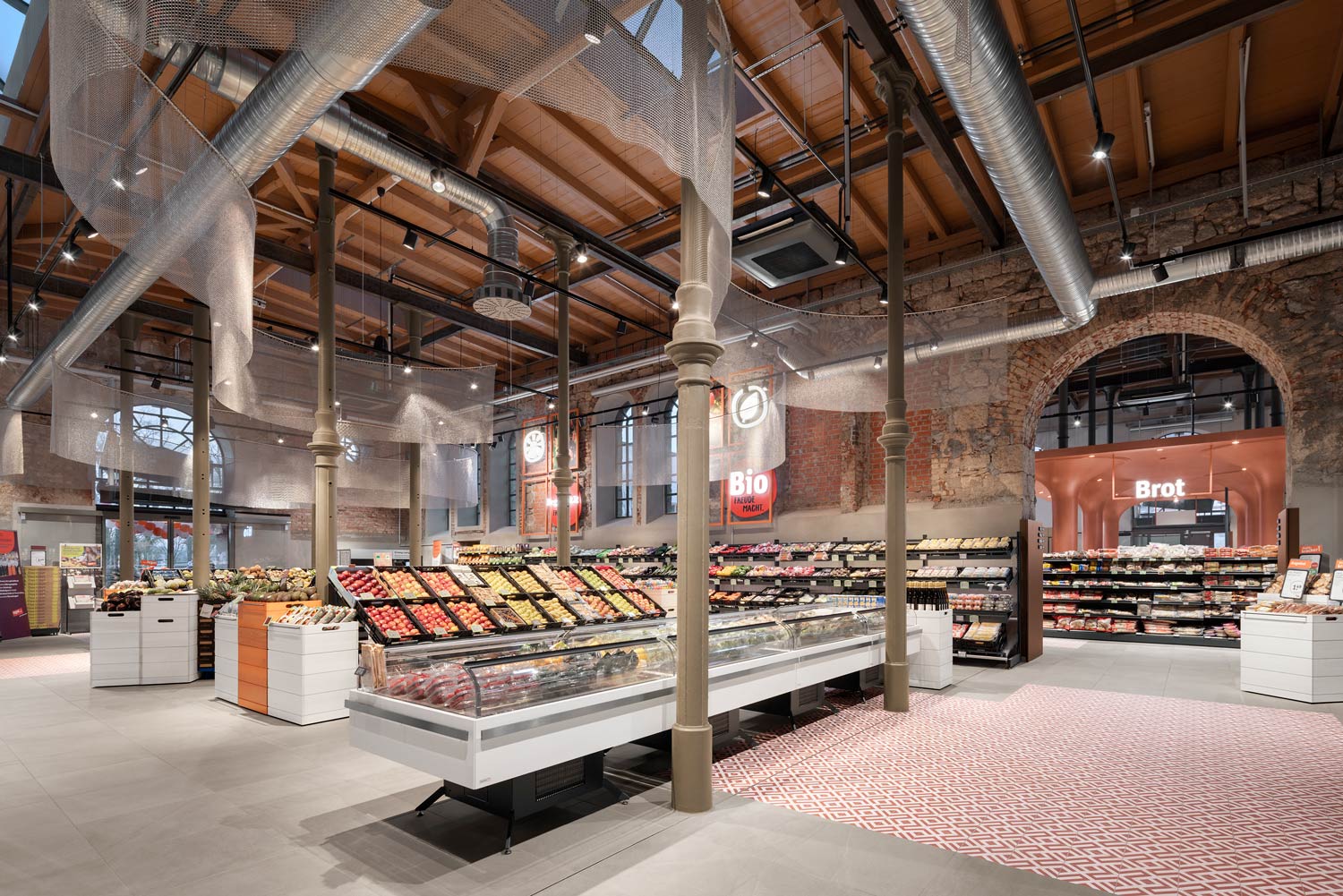 Mein Fokus lag darauf, diesen Charakter sichtbar zu machen: die Geschichte des Ortes, die bewusste Entscheidung gegen Neubau und für Nachhaltigkeit sowie die Atmosphäre eines Marktes, der seine Vergangenheit nicht versteckt, sondern integriert. So entstand eine Bildserie, die zeigt, wie Architektur, Nachhaltigkeit und moderner Handel eine überzeugende Einheit bilden.