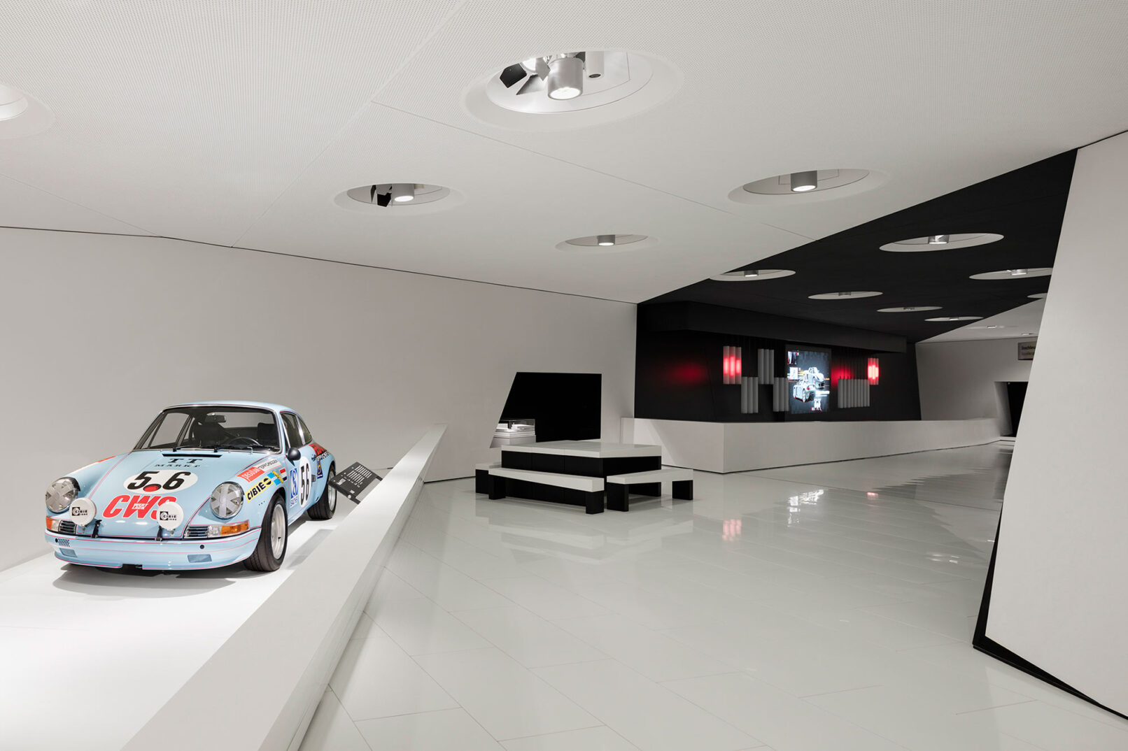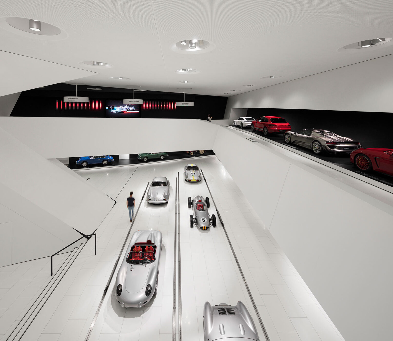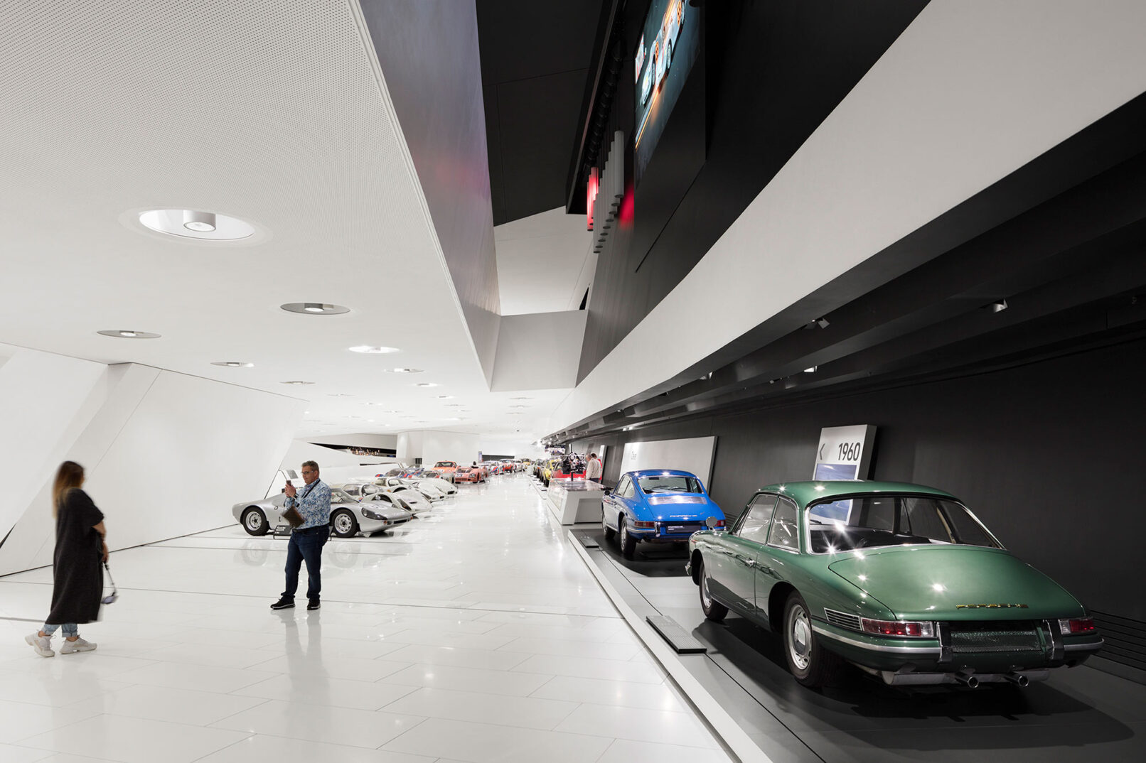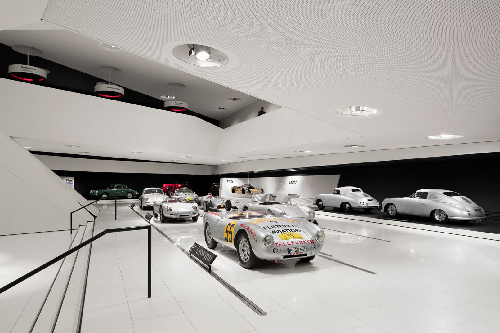 Im Stuttgarter Stadtteil Zuffenhausen wurde 2009 das Porsche Museum nach 4 Jahren Bauzeit eröffnet. Die architektonische Gestaltung des spektakulären Bauwerkes stammt vom Wiener Architekturbüro DMAA – Delugan Meissl Associated Architects. Das Konzept für den musealen Innenausbau wurde vom Stuttgarter Büro HG Merz Architekten entwickelt. Eine Skulptur des englischen Künstlers Gerry Judah entworfen für den Porscheplatz, dient zudem als optischer Fixpunkt für Besucher aus aller Welt. Drei Stelen mit bis zu 24 Metern Höhe tragen jeweils einen Porsche 911 an ihren Spitzen. Mit regelmäßig wechselnden Sonderausstellungen begeistert das Porsche Museum nach wie vor seine Besucher und lockt jährlich bis zu 450.000 Menschen nach Stuttgart. Ich durfte eine der Ausstellungen dokumentieren, um das Zusammenspiel zwischen Architektur und Automobilbegeisterung zu dokumentieren. Die lebendige Tradition und die Dynamik der Marke Porsche zugleich, sollten in Bildern Ausdruck finden.