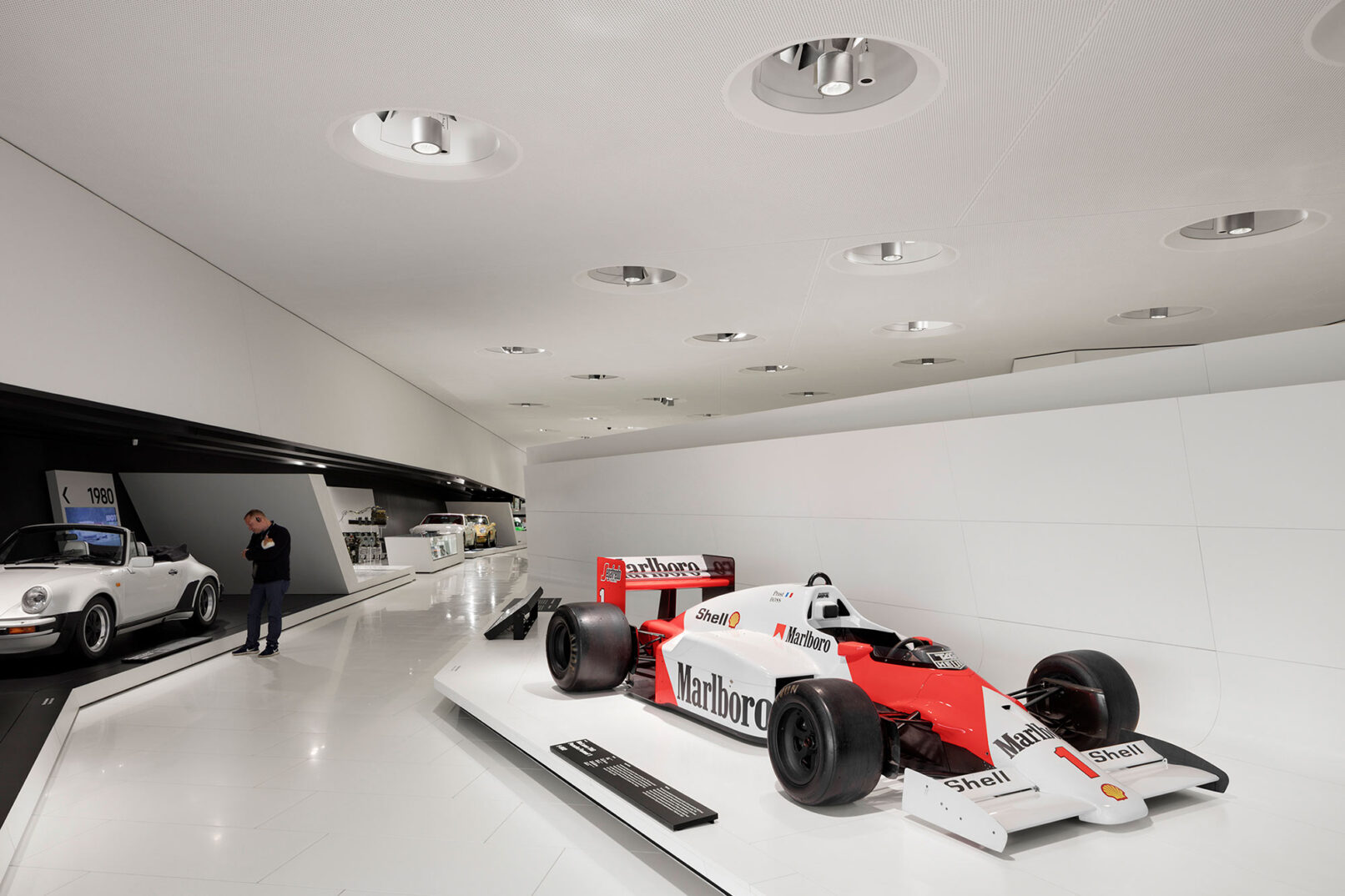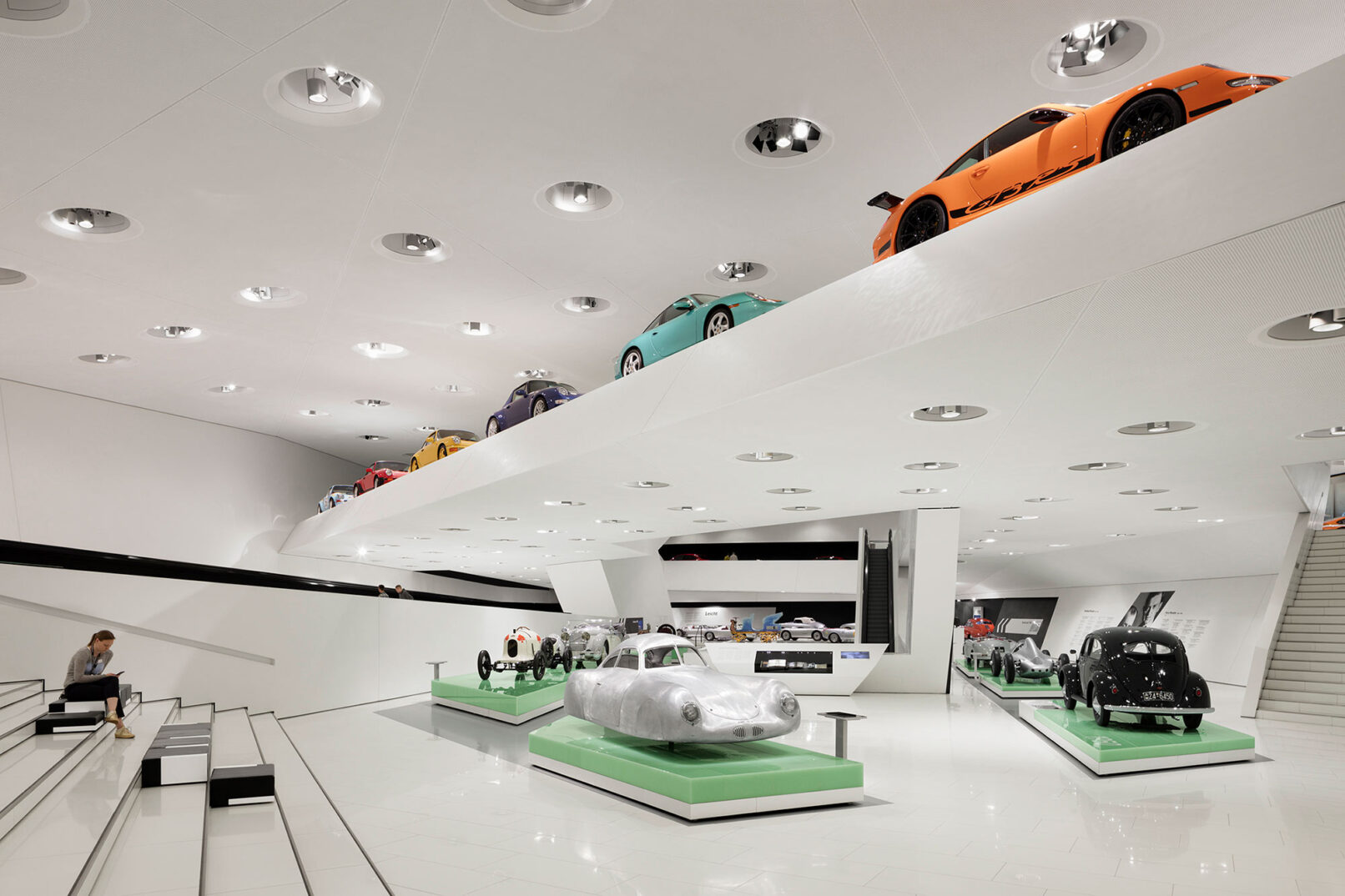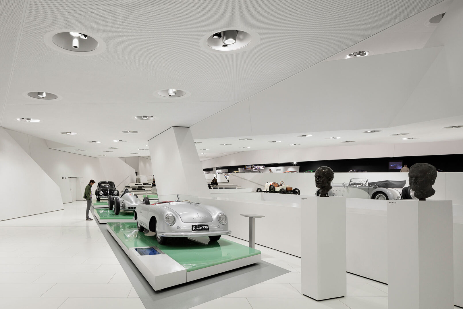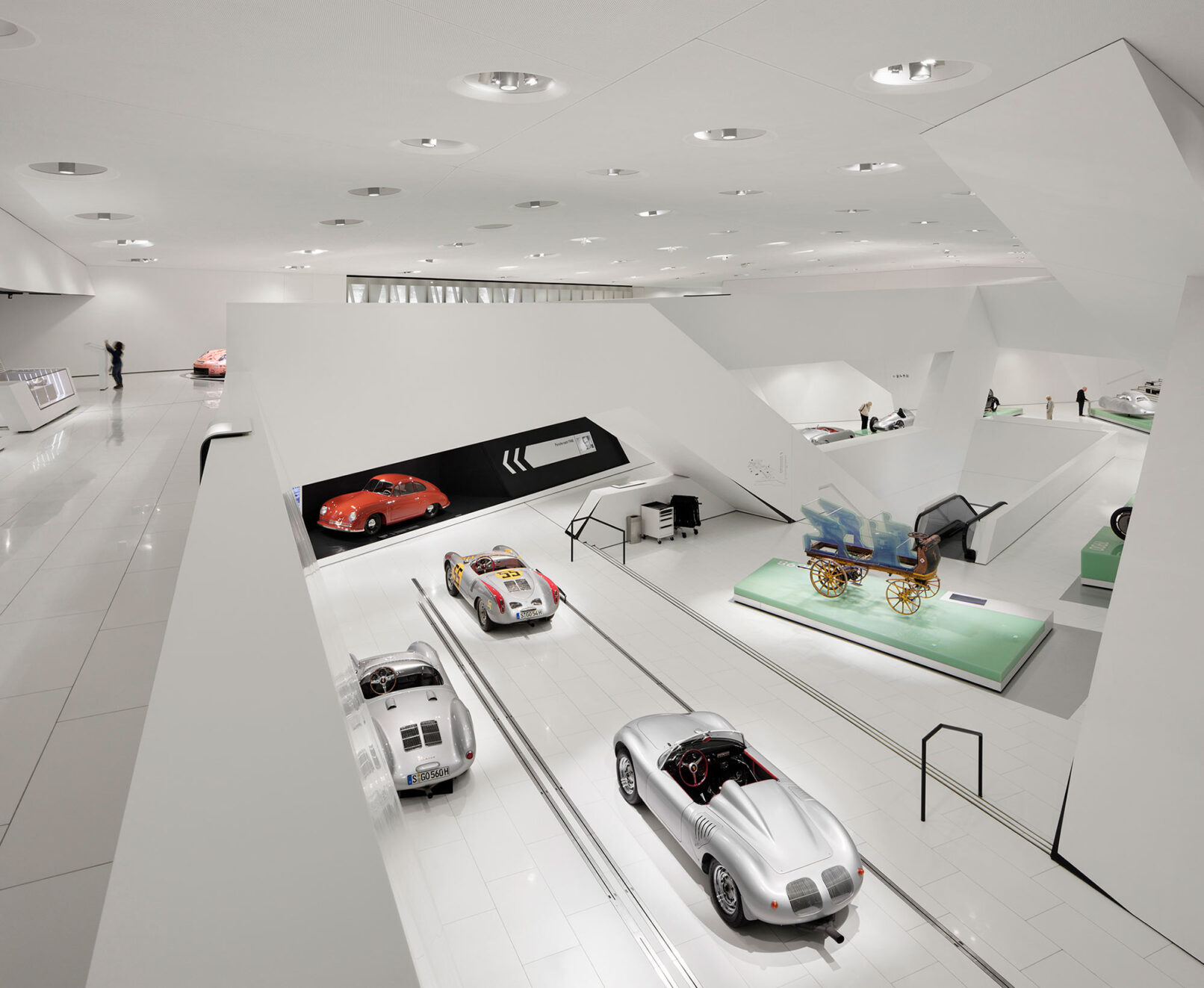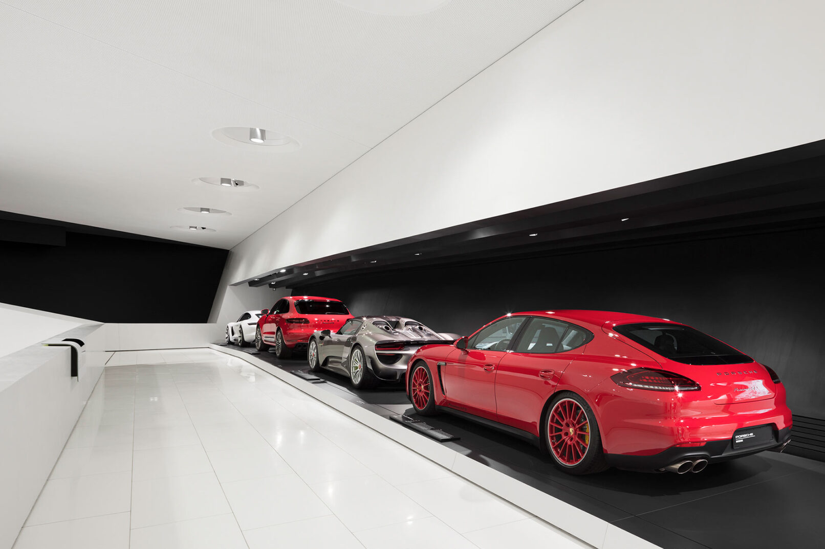 Im Stuttgarter Stadtteil Zuffenhausen wurde 2009 das Porsche Museum nach 4 Jahren Bauzeit eröffnet. Die architektonische Gestaltung des spektakulären Bauwerkes stammt vom Wiener Architekturbüro DMAA – Delugan Meissl Associated Architects. Das Konzept für den musealen Innenausbau wurde vom Stuttgarter Büro HG Merz Architekten entwickelt. Eine Skulptur des englischen Künstlers Gerry Judah entworfen für den Porscheplatz, dient zudem als optischer Fixpunkt für Besucher aus aller Welt. Drei Stelen mit bis zu 24 Metern Höhe tragen jeweils einen Porsche 911 an ihren Spitzen. Mit regelmäßig wechselnden Sonderausstellungen begeistert das Porsche Museum nach wie vor seine Besucher und lockt jährlich bis zu 450.000 Menschen nach Stuttgart. Ich durfte eine der Ausstellungen dokumentieren, um das Zusammenspiel zwischen Architektur und Automobilbegeisterung zu dokumentieren. Die lebendige Tradition und die Dynamik der Marke Porsche zugleich, sollten in Bildern Ausdruck finden.